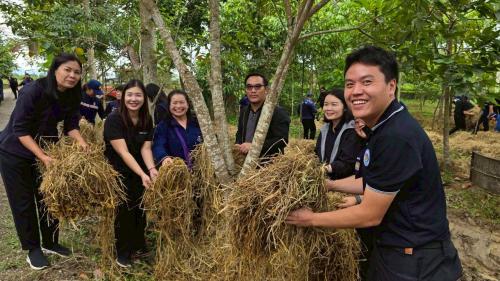 ภายหลังพิธีเปิด คณะผู้บริหารและผู้ร่วมงานได้ร่วมกิจกรรม “เอามื้อสามัคคี” ห่มดิน (ห่มฟาง) และเยี่ยมชมความสำเร็จของศูนย์เรียนรู้ฯ ใน 4 จุดสำคัญ ได้แก่