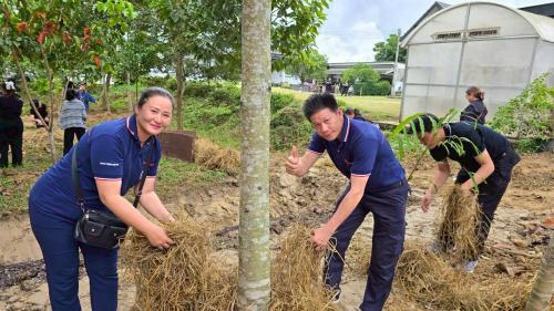เวลา 08.00 น. นางสาวฐิตาภา ใจบาน พัฒนาการอำเภอเชียงของ พร้อมเจ้าหน้าที่สำนักงานพัฒนาชุมชนอำเภอเชียงของ และผู้นำอาสาพัฒนาชุมชน อำเภอเชียงของ (ผู้นำ อช.) เข้าร่วมกิจกรรม “เอามื้อสามัคคี โคก หนอง นา อารยเกษตร” ระดับจังหวัด ขับเคลื่อนเศรษฐกิจพอเพียง สู่การพัฒนาชุมชนยั่งยืน ณ ศูนย์เรียนรู้การพัฒนาคุณภาพชีวิตตามหลักทฤษฎีใหม่ประยุกต์สู่ “โคก หนอง นา” แปลงนายธนกร โชคชัดชาญพัฒนา บ้านสันธาตุ ตำบลแม่คำ อำเภอแม่จัน จังหวัดเชียงราย