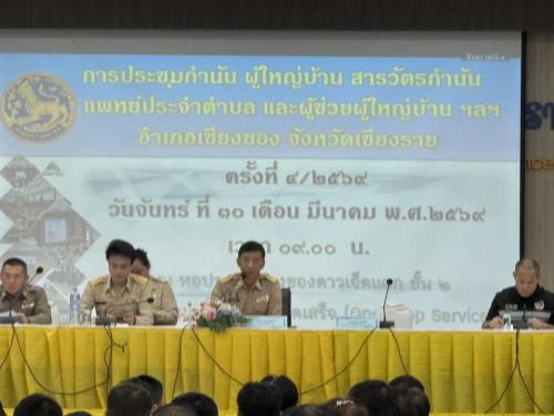 โดยมีนายสุรเชษฐ์ พุ้ยน้อย นายอำเภอเชียงของ เป็นประธานการประชุม พร้อมด้วยหัวหน้าส่วนราชการ กำนัน ผู้ใหญ่บ้าน ผู้ช่วยผู้ใหญ่บ้าน แพทย์ประจำตำบล และสารวัตรกำนัน เข้าร่วมประชุมเพื่อรับแจ้งข้อราชการและหารือแนวทางการพัฒนาพื้นที่