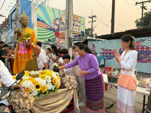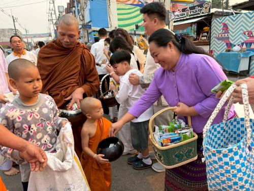 โดยมี นายสุรเชษฐ์ พุ้ยน้อย นายอำเภอเชียงของ เป็นประธานในพิธีฯ พร้อมด้วย นางอัญชลา พุ้ยน้อย นายกกิ่งกาชาดอำเภอเชียงของ/ประธานชมรมแม่บ้านมหาดไทยอำเภอเชียงของ หัวหน้าส่วนราชการ และประชาชนชาวเชียงของร่วมใจกันสวมชุดผ้าไทยพื้นเมืองร่วมตักบาตรตลอดเส้นทาง